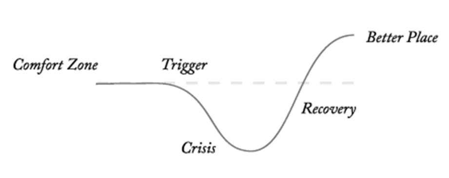 - Crisis: you’re down in a hole, but in stories we find treasure in the dark. This is where you find or learn something valuable.
